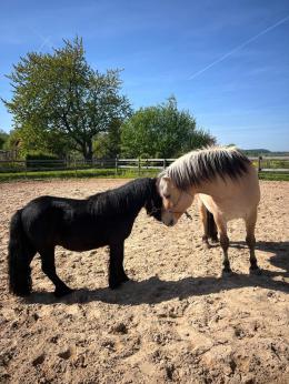 In 2014 habe ich mich entschlossen die Ponyschule Schönbach zu gründen. Da mein Mann Alex aus gesundheitlichen Gründen nur noch eingeschränkt mithelfen kann, sind wir Ende 2025 von der Grindelmühle zu uns Nachhause in die Ohmstr.3a gezogen. Zwei Häuser von unserem alten Standort entfernt leben jetzt die Ponys hinter unserem Haus in einem Offenstall. Als direkte Nachbarin haben wir meine liebe Kollegin Anastasia.